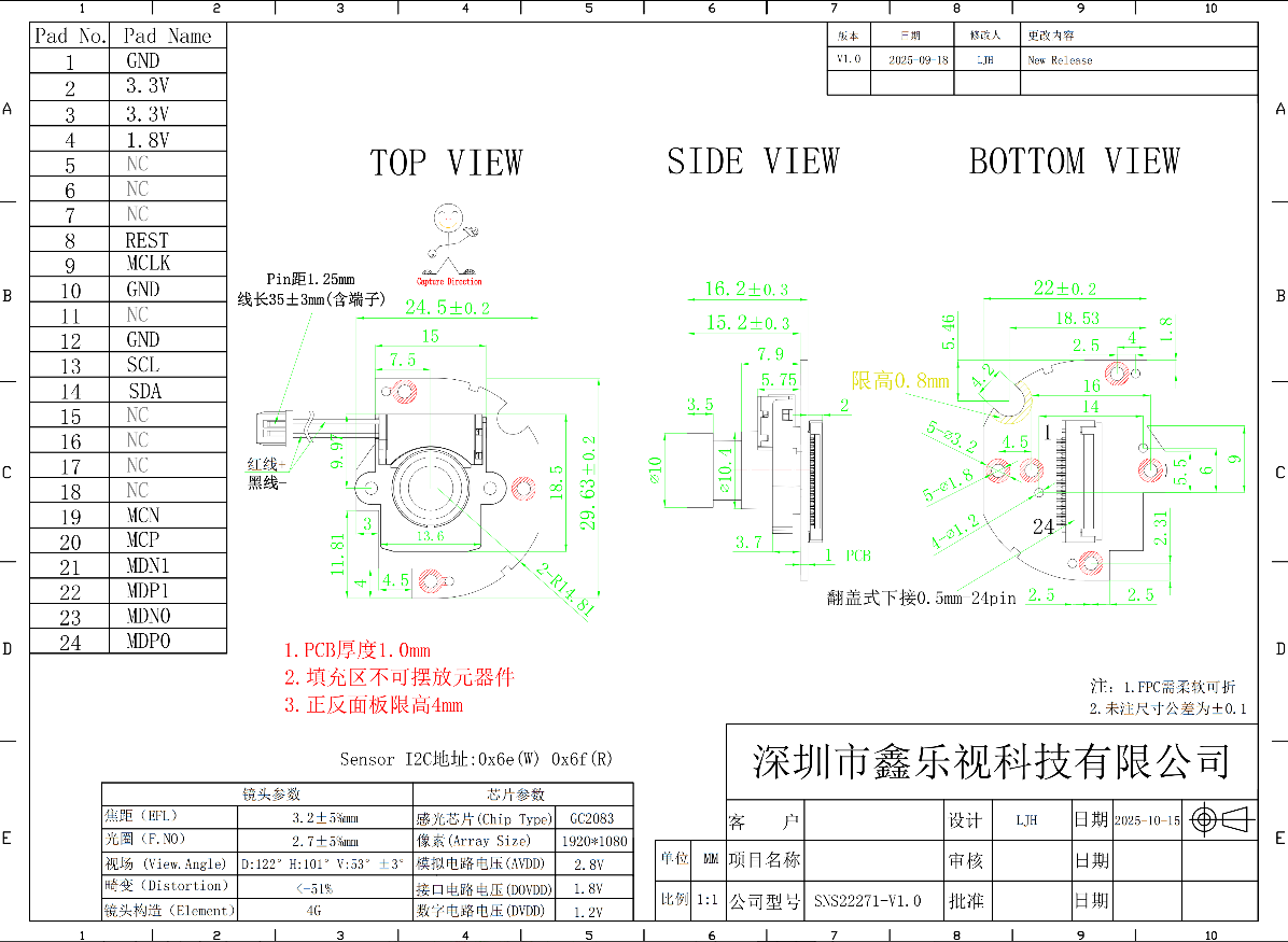 - Requirement Definition – Submit lens, FPC, and connector specs for your customized 1080p camera module.