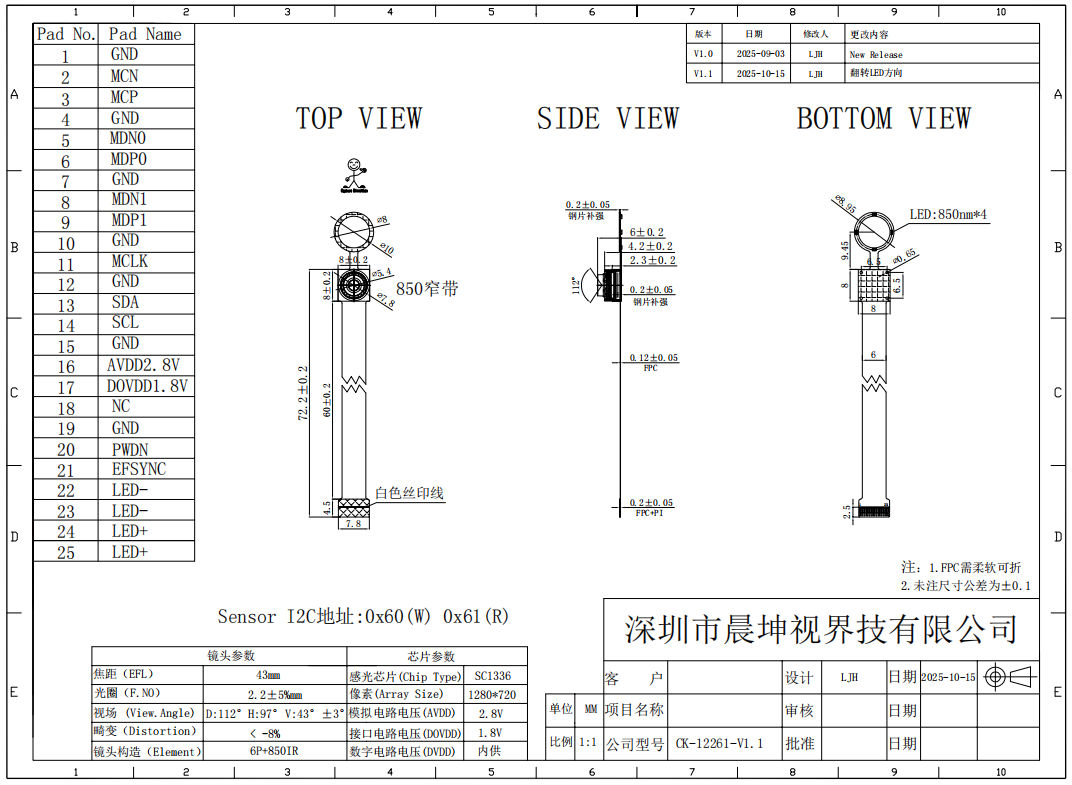 - Optical & Mechanical Design – Optimize FPC length, connector, and IR filter.